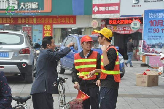 11月6日,我校响应市委市政府“文明交通志愿服务活动”号召,进一步推动我市文明城市创建工作,在团委的带领下,我校志愿者来到了钦州湾广场路口开展文明交通志愿者活动,维持交通秩序,对闯红灯、横穿马路、逆向行车等行为进行劝导,教育他们文明交通,遵守公共秩序,并对老、弱、病残者提供帮助。