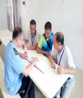 食药局检查组首先对我校食堂的卫生许可证和餐饮许可证进行例行检查,之后依次来到消毒间、留样间、制作间、主副食仓库、快检室、配餐间、票据资料室等功能房间,对蒸汽消毒、留样种类与时间、饭菜制作过程、调味料、农残检测、物品储存、索票索证进行了详细的询问和检查,并对厨房量化设施、每日自检表和环境卫生等进行了检查。经检查,没有发现食品安全问题与违规操作。食药局对我校食堂开学的整体工作表示了充分的肯定,并对未来工作的提升提出了建议。