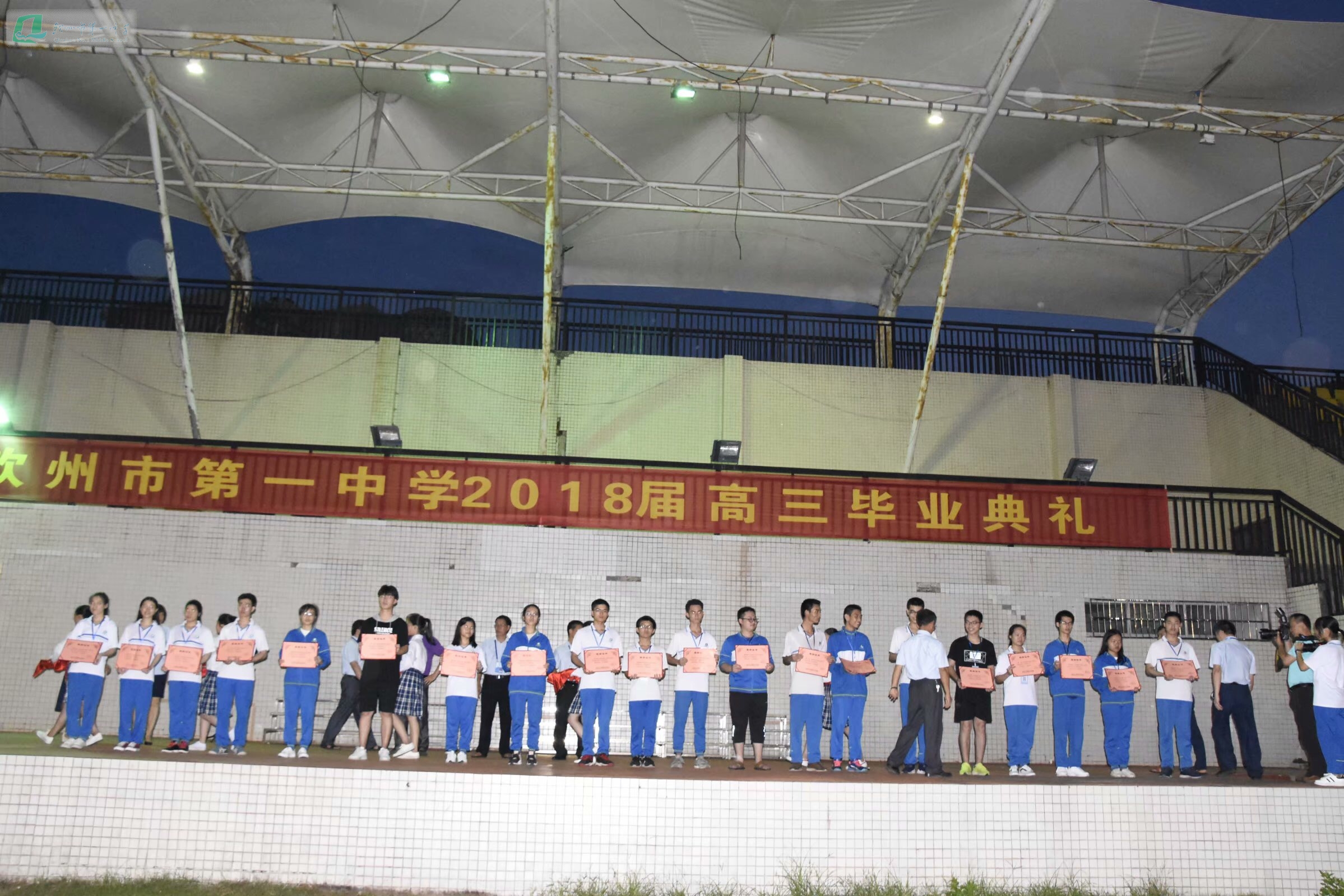 6月8日晚上,在庄严而隆重的升旗仪式后,李禄全副校长宣读了学校关于表彰“十佳毕业生”和“百名优秀毕业生”的文件。陈静兴校长为十佳毕业生颁发奖状和奖品,全体校级领导为百名优秀毕业生颁发奖状。